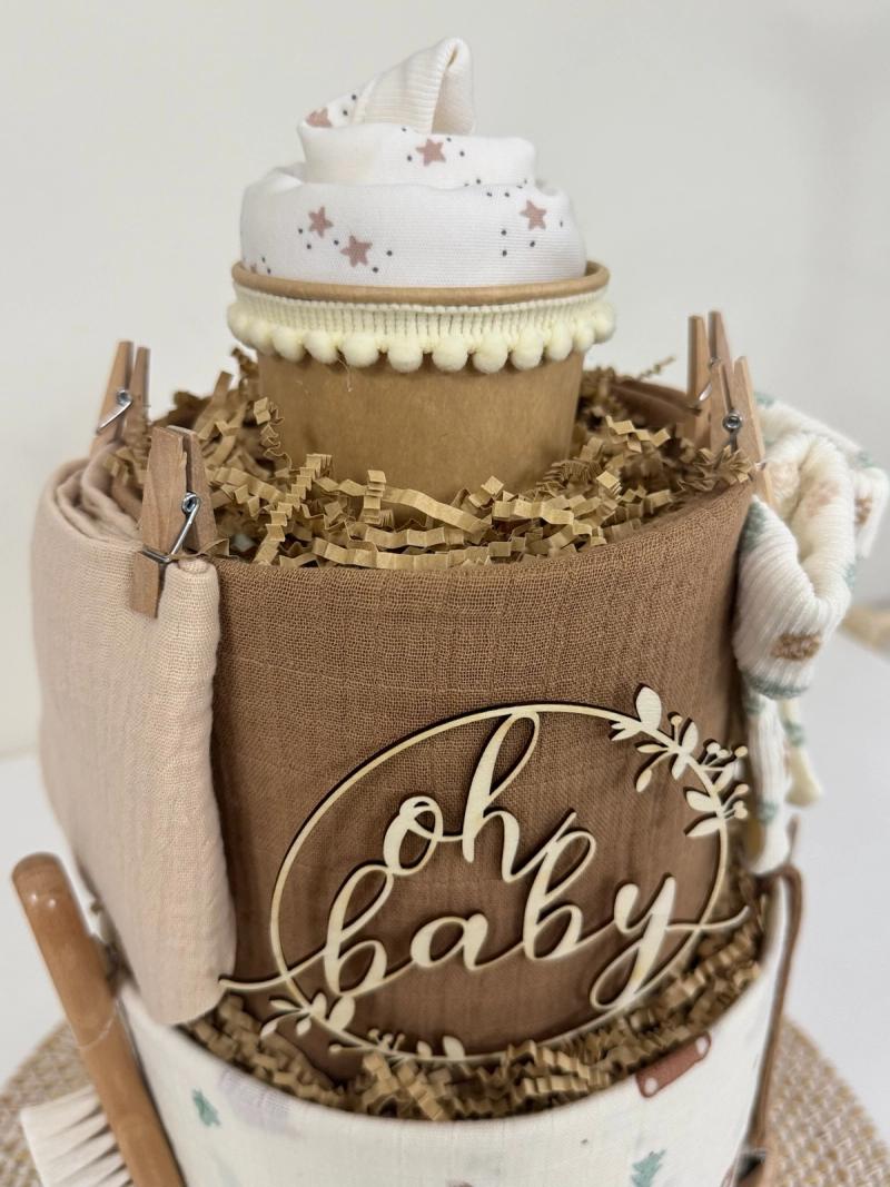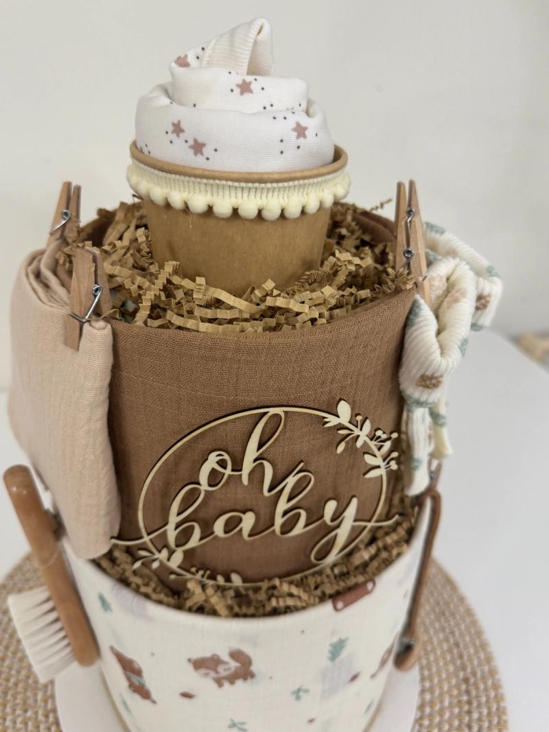 Χειροποίητη τούρτα από πάνες με θέμα το δάσος. Ιδανικό δώρο για τη γέννηση ενός μωρού.
